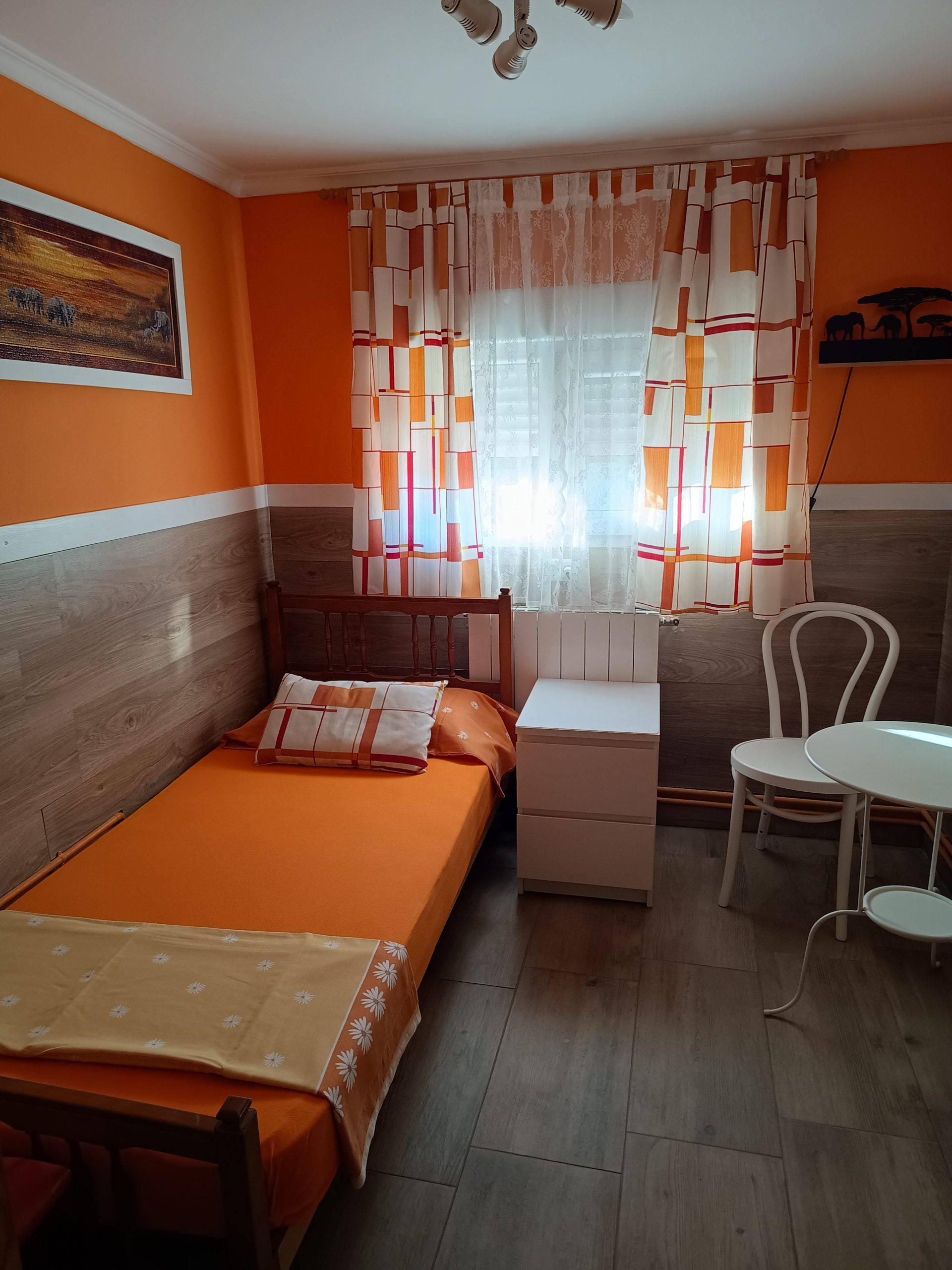 Комната N6 с двухспальной кроватью 180х190, которая состоит из двух односпальных кроватей, при необходимости кровати можно раздвинуть на отдельные. Кондиционер. Так как комнаты соеденены, то кондиционер обслуживает обе комнаты.