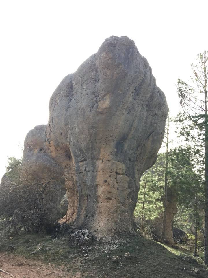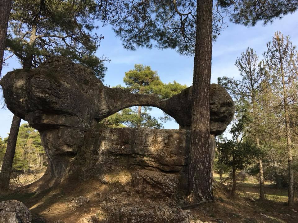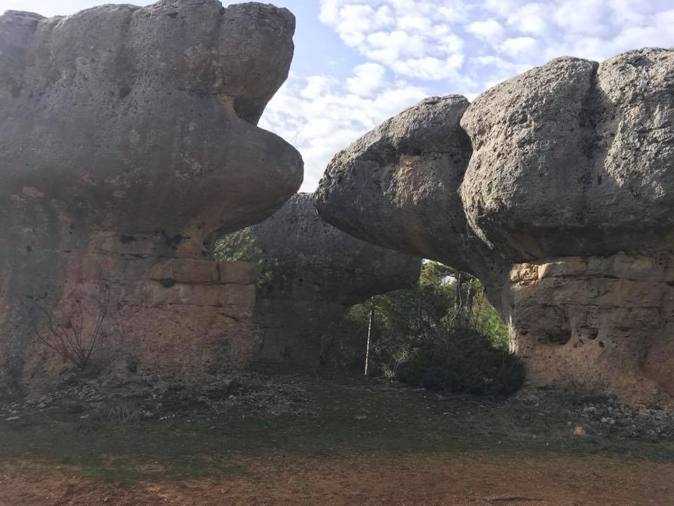 Музей Камней — ЗАЧАРОВАННЫЙ ГОРОД (LA CIUDAD ENCANTADA). В окрестностях Куэнки расположилась весьма необычная природная достопримечательность – Заколдованный, или Зачарованный, город (La Cuidad Encantada). Это сказочное место в окружении гор и огромных сосен. Находится парк на высоте 1,5 км над уровнем моря, а ландшафт состоит из мягких осадочных известняковых пород. Эта территория Пиренейского полуострова в древности была морским дном, и останки животных осаждались в течение 90 миллионов лет, а скелеты накапливались под толщей воды. В конце мелового периода происходили движения земной коры и морское дно поднялось над водой, а многолетние кальциевые отложения стали известняковыми скалами. Пористая осадочная порода постепенно менялась под действием текущей и замерзающей воды, перепадов температуры и ветра. Сейчас скалы приобретали разнообразные живописные силуэты. Пешеходная тропа протяженностью около 3 км проложена вдоль самых интересных экземпляров.