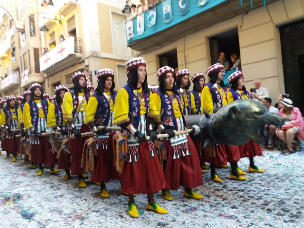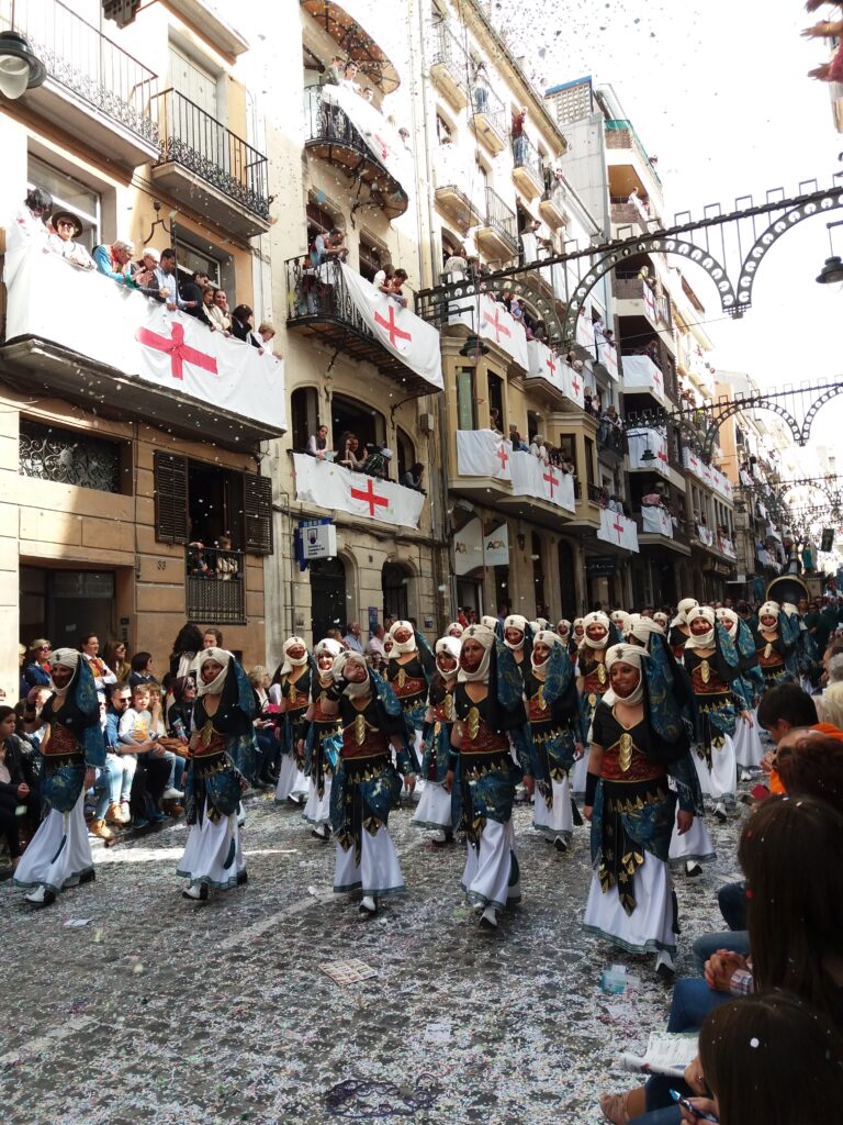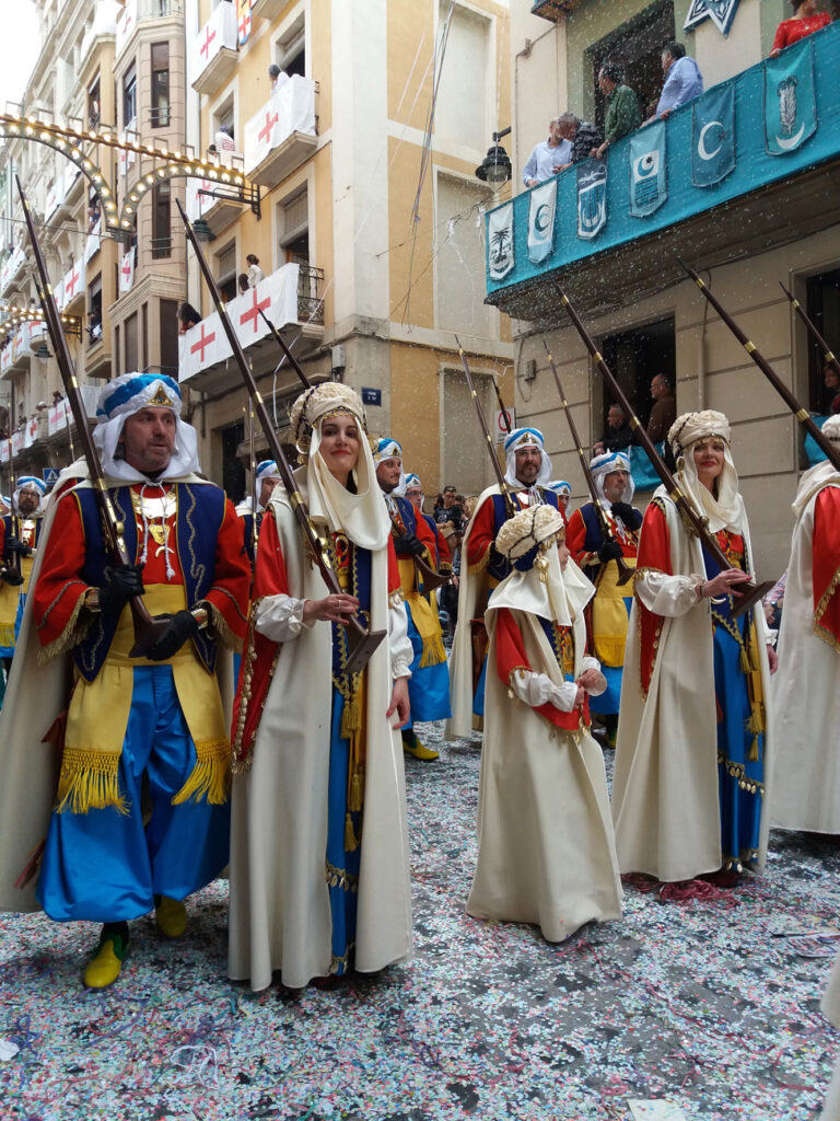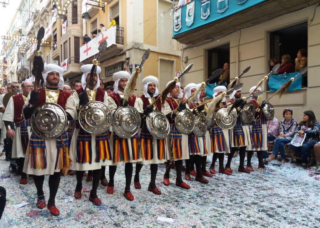 Как правило, праздник длится около 3 дней, в течение которых проходят потрясающие костюмированные шествия — поочередно, мавров и христиан, — театрализированные постановки сражений и исторических событий (нередко с захватом специально построенных к празднику замков), средневековые ремесленные рынки… Окунувшись в атмосферу тех времен, вы почувствуете себя участником настоящих баталий. Улицы наполнятся живой музыкой, национальными танцами, запахом пороха и всеобщим весельем.