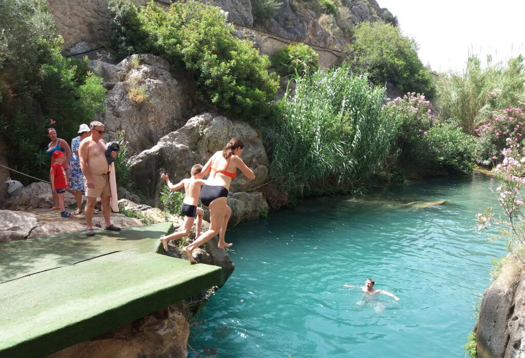 13. Экскурсия в Национальный парк Водопады Альгар (Algar), заповедный уголок, который образовался из-за размывания рекой Альгар известковых пород, находящихся в ущелье. А если его дополнить пышной средиземноморской растительностью, добавить каменные гроты и водопады, то получится великолепное место для отдыха и медитации во время жары для всей семьи. Здесь можно погулять, устроить пикник и искупаться в прозрачной прохладной речке, вода летом + 16, но при жаре + 36 нырнуть в такую освежаюшую воду одно удовольствие.